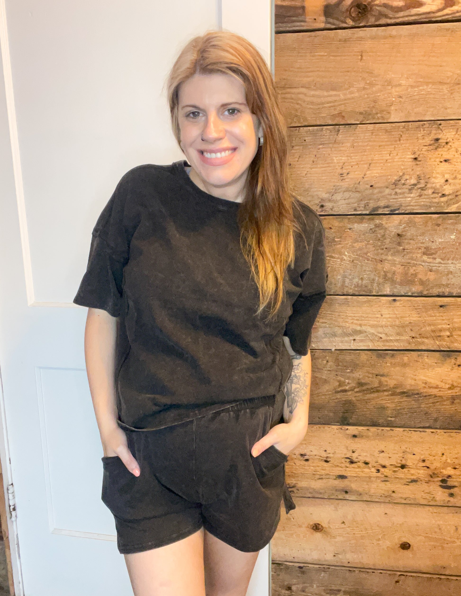 Amy Acid Wash shorts set in Ash Black