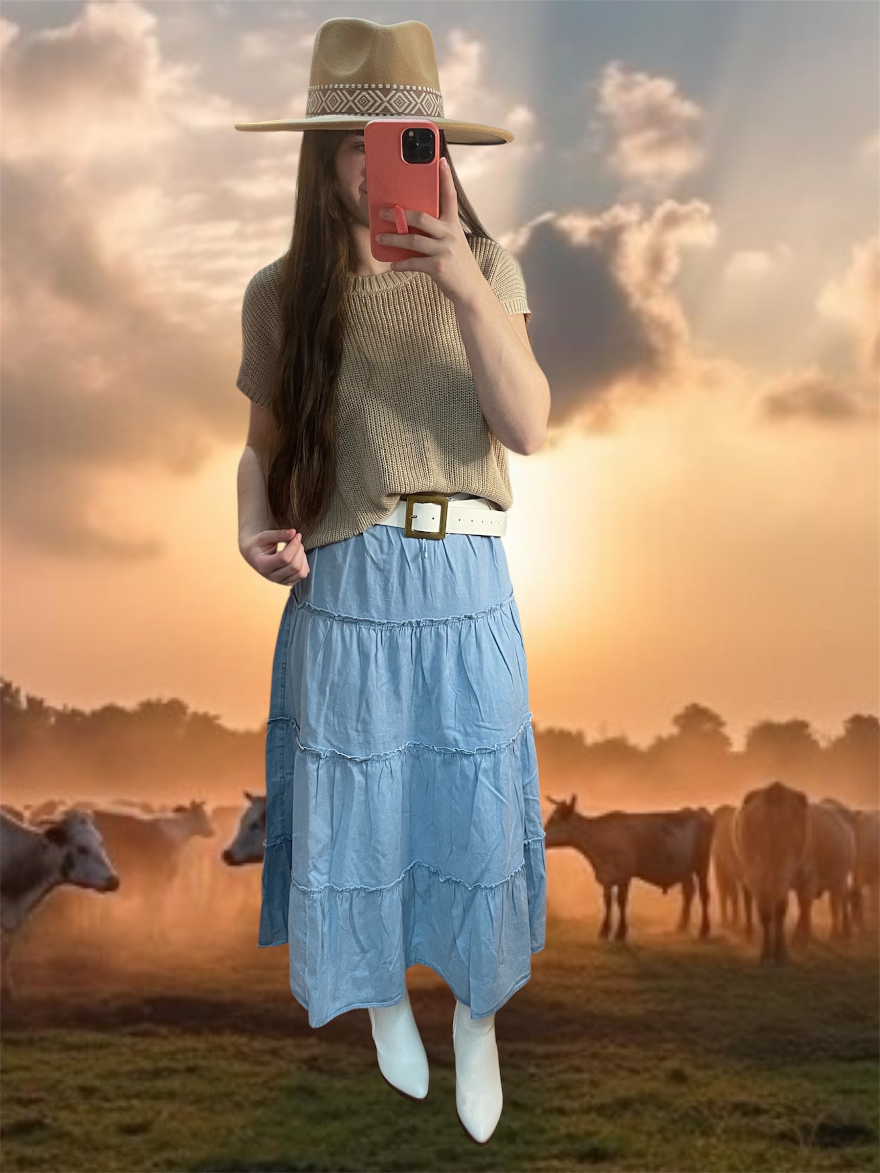Wrap yourself in the soft glow of fall with the Harvest Haze Knit Top. This lightweight, textured knit features a relaxed silhouette, rolled sleeves, and a golden neutral hue that pairs perfectly with jeans, flannels, or layered under your favorite shacket. Whether youβre headed to the pumpkin patch or cozying up on the porch, this top is a must-have staple for the season.