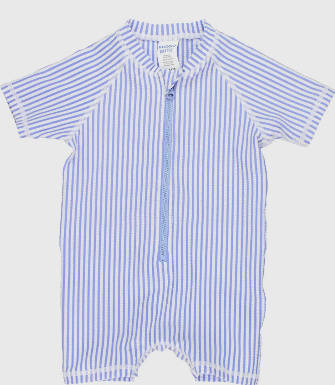Rufflebutts Periwinkle Seersucker Short Rashguard Swimsuit